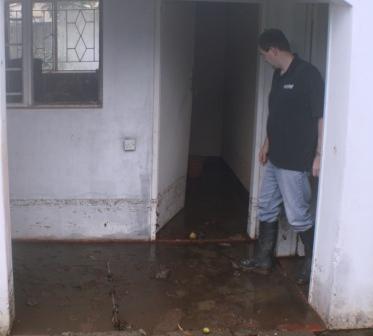 t was calming down and I started to doze off, it started up again. The real downer is that we woke up this morning, looked out of our kitchen window and saw that a large stretch of our wall that goes around the garden had collapsed. We rushed out to check the dogs but thankfully they were around the front and hadn’t noticed, as they would have been all over the neighbourhood causing chaos... There is a servants quarters at the bottom of the garden which is used for storage and they were full of mud. It really was a mess - you can see the tide mark on the wall just above Grahams boot. To make matters worse, the belongings of one of our missionaries are currently in storage in one of these rooms but thankfully we managed to rescue most of her things although there is now a big pile of laundry! The 'hole' is about 26 metres long so we are feeling a little vulnerable but in fact you would have to go through the neighbour's garden to get to our place so it could be a lot worse. Unfortunately she just says it is our problem. In fact her property is slightly higher than ours and her wall fell on top of ours (there is a passage way between the two) but she says they are both our walls. The good news is that we hadn't handed over the rent check that was due today as the repair is going to cost around $2000! A number of other properties in the area have had similar problems so we are grateful that we were able to clear the mess and that it wasn't a front wall which would have been awful. Hopefully we will be able to make progress on repairs and get back to normal soon, whatever normal is here...!